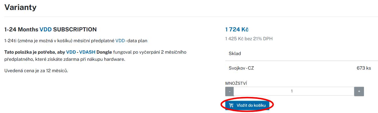 Otevřete si detail produktu VDD - Volvo function extender a v sekci Varianty najdete položku 1-24 Months VDD SUBSCRIPTION -> Vložit do košíku